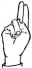 На ћирилици написано ЈЕЛЕНА МЕЧАНИН састоји се из 13 слова [?]. Исписано ћириличном једноручном азбуком за глувонеме: